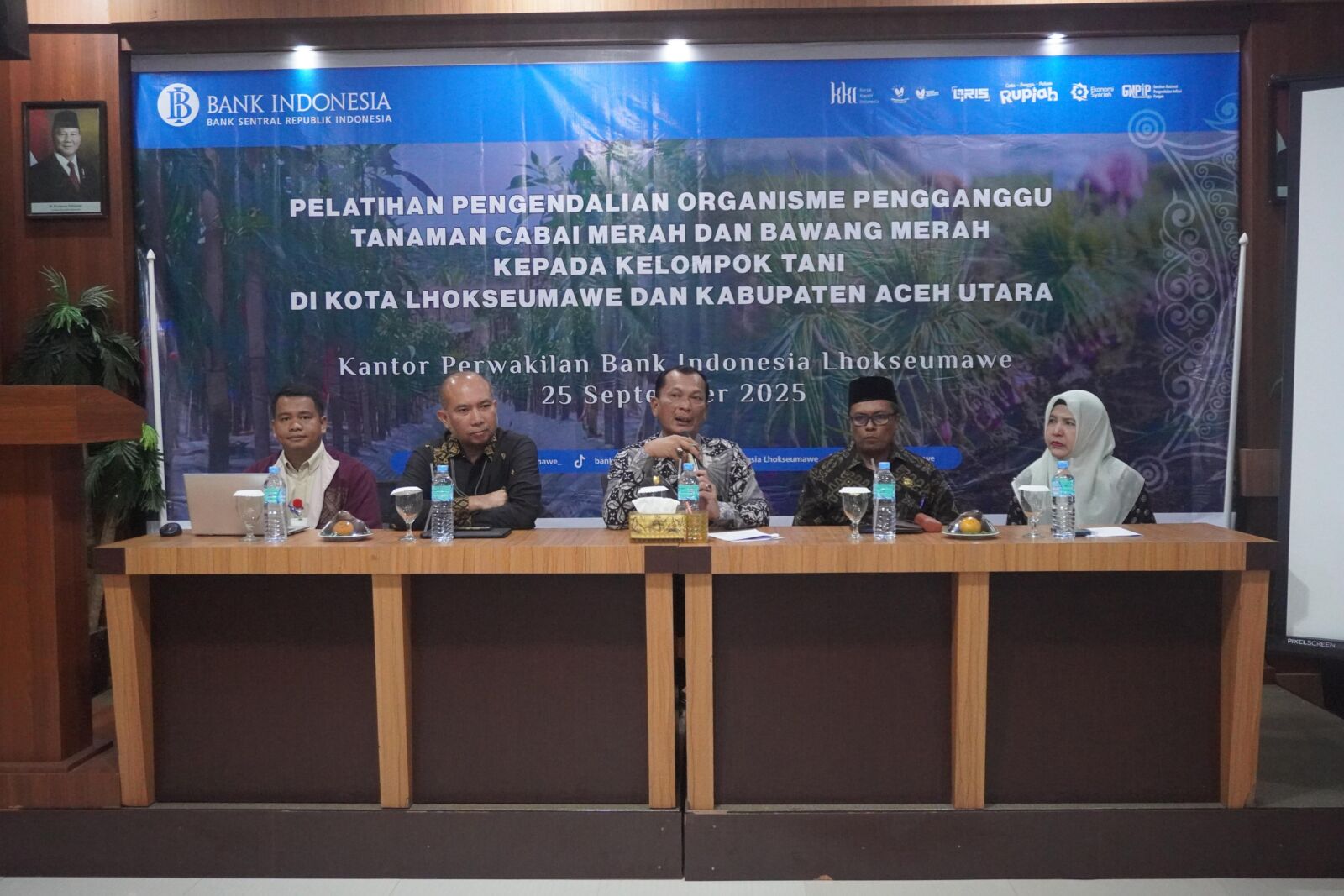 “BI sangat mendukung sekali kegiatan sinergi pelatihan hari ini. Dengan kegiatan ini, petani bisa mengimplementasikan pengendalian OPT dan hasil panen cabai merah dan bawang merah di Lhokseumawe dan Aceh Utara dapat maksimal sehingga pasokan di masyarakat memadai dan tingkat inflasi terkendali.”.
