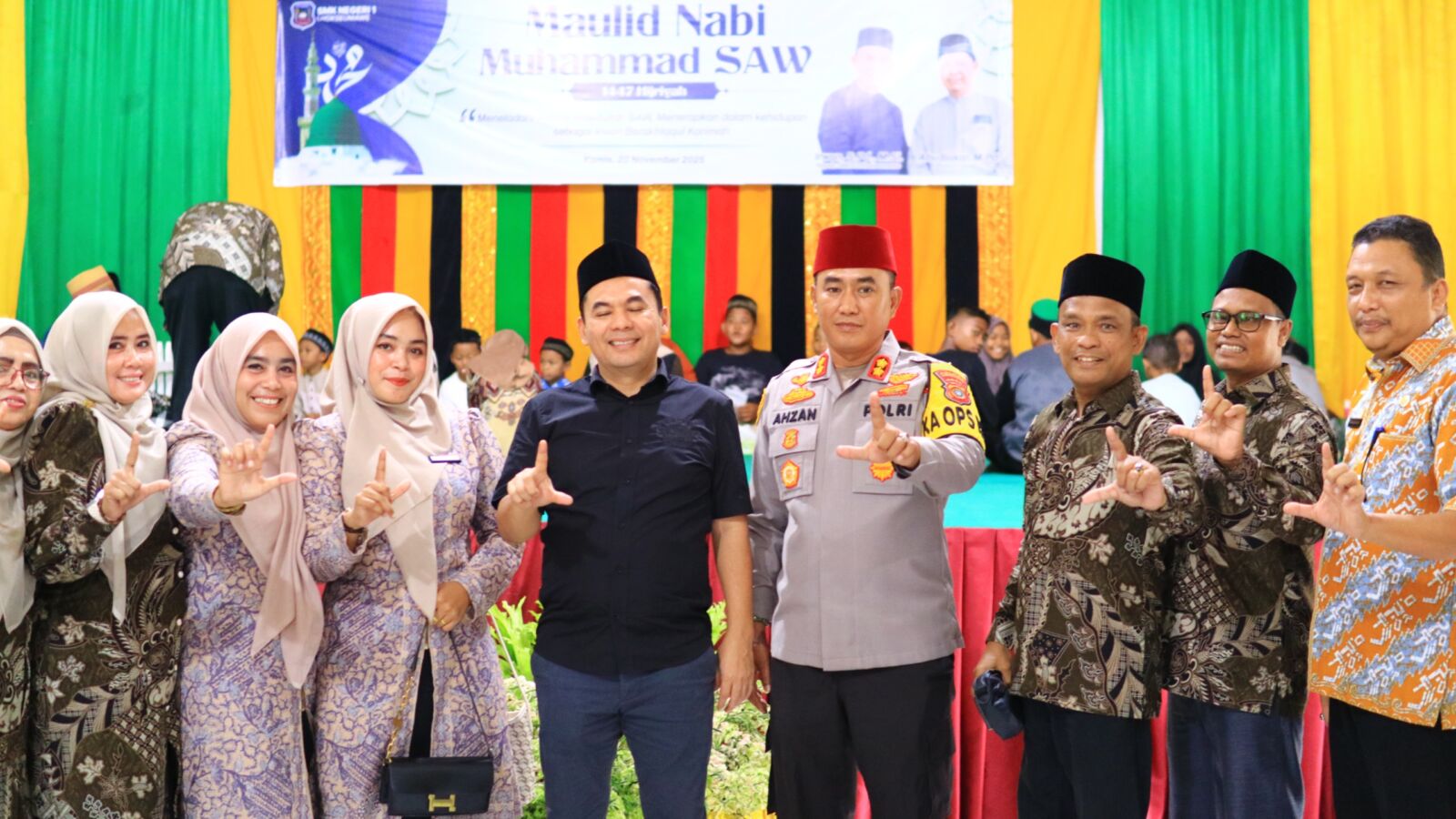 Kapolres Lhokseumawe AKBP Dr. Ahzan dalam kesempatan itu menyampaikan bahwa peringatan Maulid Nabi merupakan momentum penting untuk meneladani akhlak mulia Rasulullah SAW. “Kami berharap nilai-nilai akhlak, kepedulian, dan persaudaraan yang dicontohkan Rasulullah SAW dapat terus ditanamkan kepada generasi muda, sehingga mampu membentuk karakter yang berintegritas dan berakhlak baik,” ujarnya.