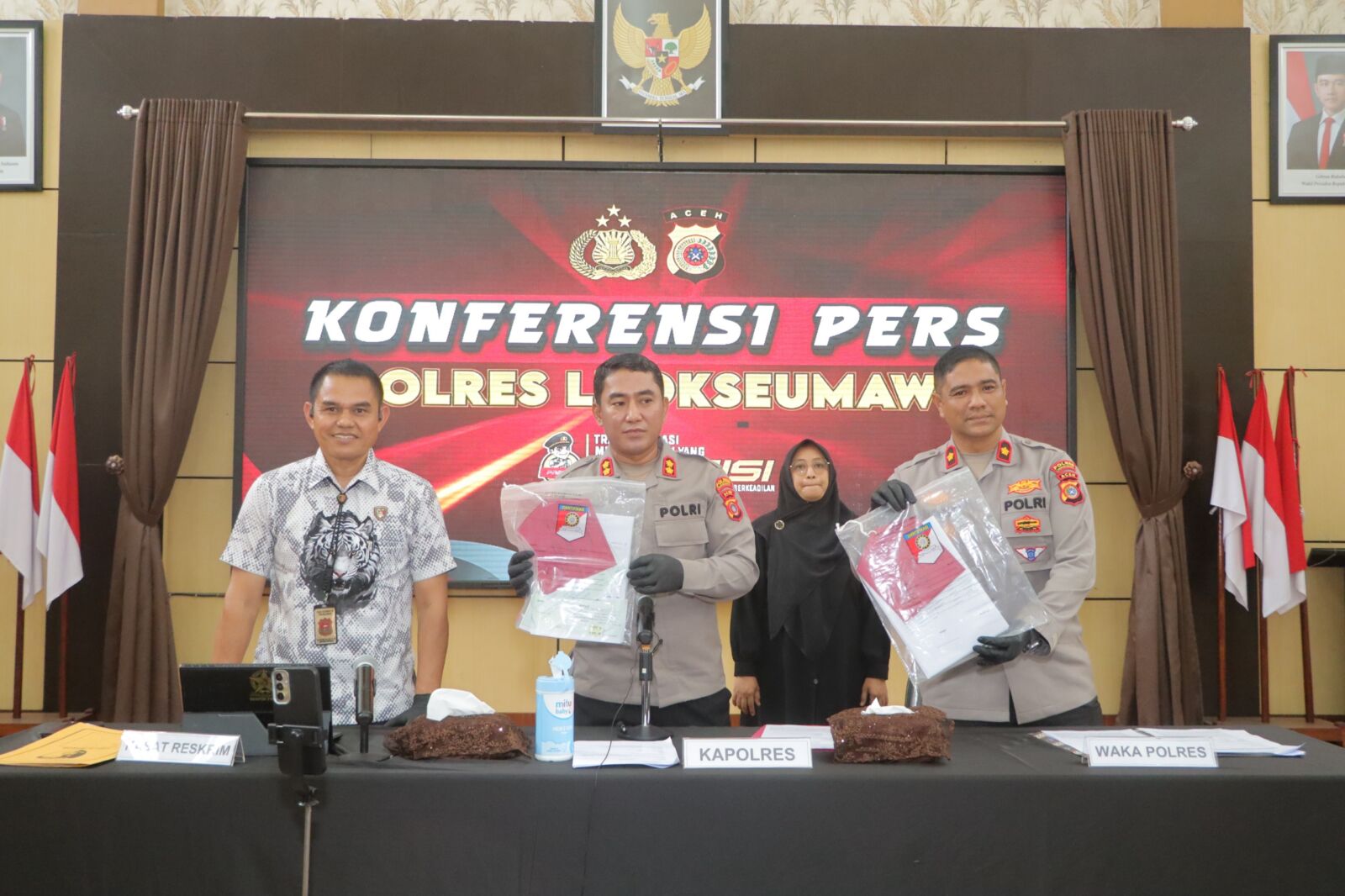 Pengungkapan kasus ini disampaikan dalam konferensi pers yang dipimpin Kapolres Lhokseumawe AKBP Dr. Ahzan, S.H., S.I.K., M.S.M., M.H., didampingi Wakapolres Kompol Salmidin, S.E., M.M., serta Kasat Reskrim AKP Dr. Bustani, S.H., M.H., M.S.M., M.Si., M.Kn, di Gedung Serbaguna Polres Lhokseumawe, Rabu (8/4/2026) pagi, di hadapan sejumlah awak media.
