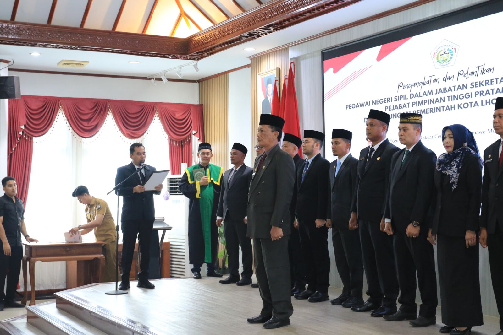 Pelantikan yang berlangsung di Aula Kantor Wali Kota itu juga menetapkan 11 pejabat pimpinan tinggi pratama (eselon II) untuk memimpin sejumlah organisasi perangkat daerah (OPD). Acara diawali dengan pembacaan ayat suci Al-Qur’an, menyanyikan Indonesia Raya dan Hymne Aceh, serta pengambilan sumpah jabatan. Hadir dalam kegiatan tersebut Kepala Kantor BKN Regional XIII, Ir. Agus Sutiadi, M.Si., unsur Forkopimda, serta para tamu undangan.